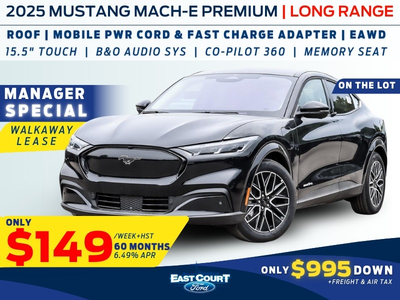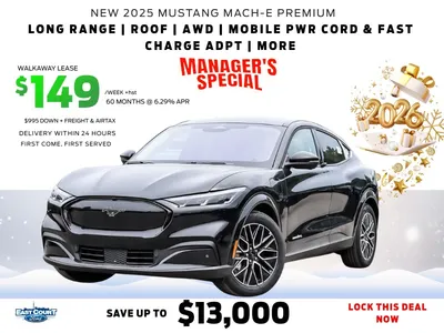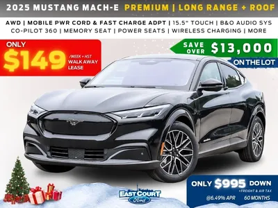 Explore current Mustang Mach-E deals at East Court Ford Toronto. Save thousands on lease, finance, or cash purchases and experience Canada’s best all-electric SUV offers. Schedule a test drive and find your perfect Mustang Mach-E today!